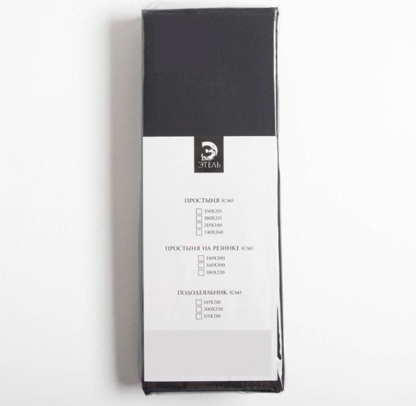 Простыня на резинке Этель 200*220*25 см, цв.черный, 100% хлопок, мако-сатин, 125 г/м²