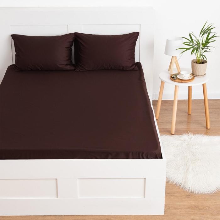 Простыня на резинке Этель 160*200*25 см, цв.темно-коричневый, 100% хлопок, мако-сатин, 125 г/м² 5373