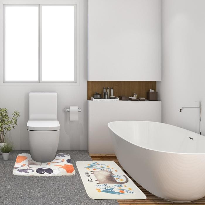Набор ковриков для ванной Этель «Котики» 2 шт, 80×50 см, 50×40 см, велюр