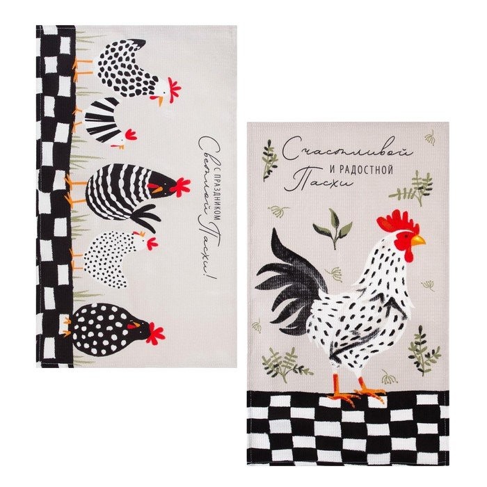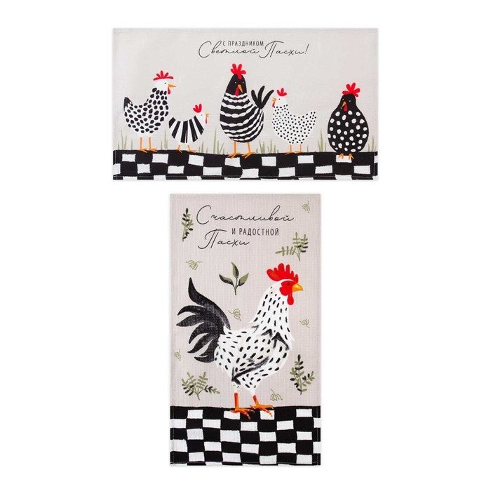 Набор кухонных полотенец Доляна «С праздником Светлой Пасхи», 35х60см-2 шт, 100% хл, вафля 160 г/